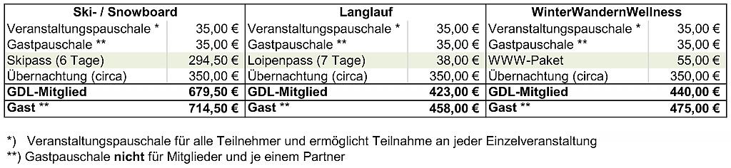 | Snowboardkurs | 5 Tage | 285,00 € |
