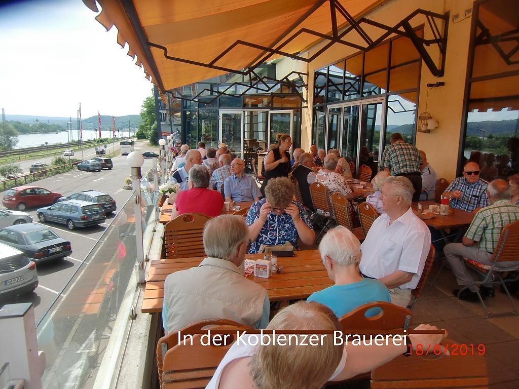 Am 18. Juni 2019 starteten die Senioren der Ortsgruppe Frankfurt zum alljährigen Ausflug ins Rheintal. Bei schönen Wetter begann die Tour in Frankfurt-Nied um 8:30 Uhr. Sie führte uns über die Autobahn Richtung Wiesbaden und ab Wi- Bieberich rechtsrheinisch über Eltville, Rüdesheim, Kaub auf die Loreley. Dort angekommen, konnte man den neu angelegten Kultur-und Landschaftspark besichtigen und die Aussicht auf den Rhein genießen. Der Park wird Bestandteil der Bundesgartenschau 2029. Nach einem Imbiss im Cafe ging es weiter nach Königsbach bei Koblenz. Dort kehrten wir zum Mittagessen in das Restaurant der Koblenzer Brauerei ein. Auf der Terrasse hatten wir einen schönen Blick auf den Rhein. Das Bier schmeckte und der Chor sang einige Lieder. Das vorbestellte Essen der Speisekarte wurde auch prompt serviert. Die Kellnerin mit ihrem rheinischen Frohsinn hatte alles im Griff. Wir hatten unseren Spaß. Nach zwei Stunden ging es weiter nach Boppard. In Boppard teilte sich die Gruppe. 30 Leute fuhren mit dem Sessellift zum Gedeonseck und Vierseenblick. 18 Leute verbrachten die Zeit in der Stadt zum Bummeln (Rheinpromenade, Alte Stadtmauer, Fußgängerzone) Um 17:00 Uhr ging es wieder zurück nach Frankfurt-Nied, linksrheinisch über Oberwesel, Bacharach, Bingen.
