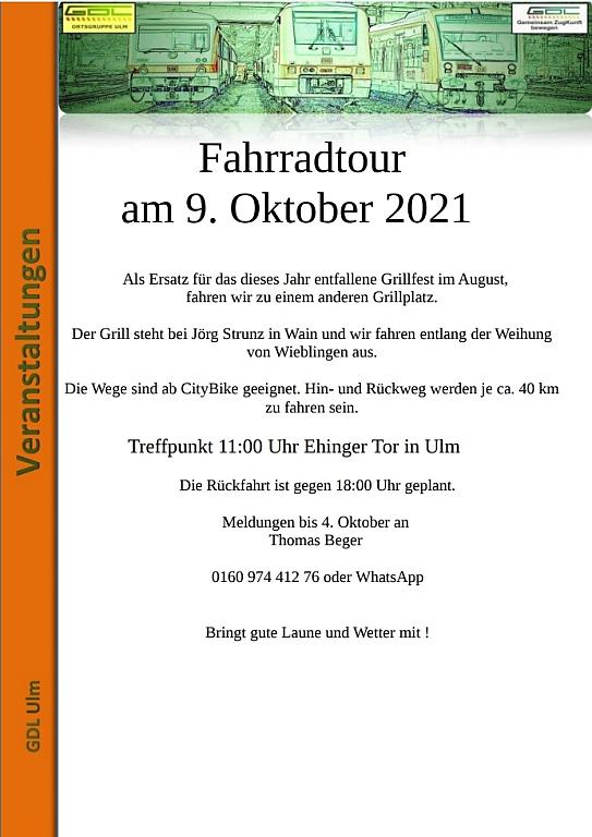 Der Grill steht bei Jörg Strunz in Wain und wir fahren entlang der Weihung von Wiblingen aus. Die Wege sind ab CityBike geeignet. Hin- und Rückweg werden je ca. 40 km zu fahren sein.