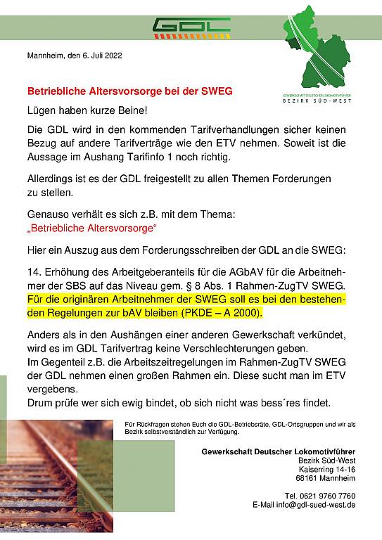 Hier ein Auszug aus dem Forderungsschreiben der GDL an die SWEG: