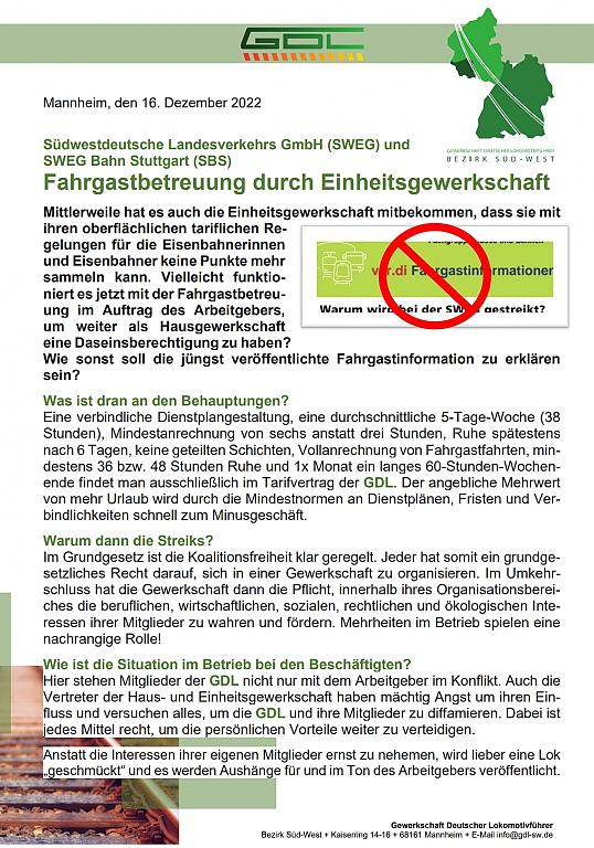 Anstatt die Interessen ihrer eigenen Mitglieder ernst zu nehemen, wird lieber eine Lok „geschmückt“ und es werden Aushänge für und im Ton des Arbeitgebers veröffentlicht.