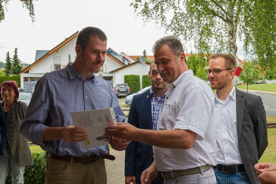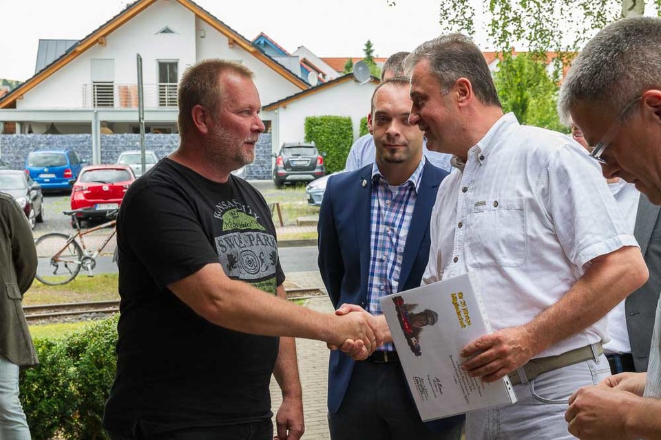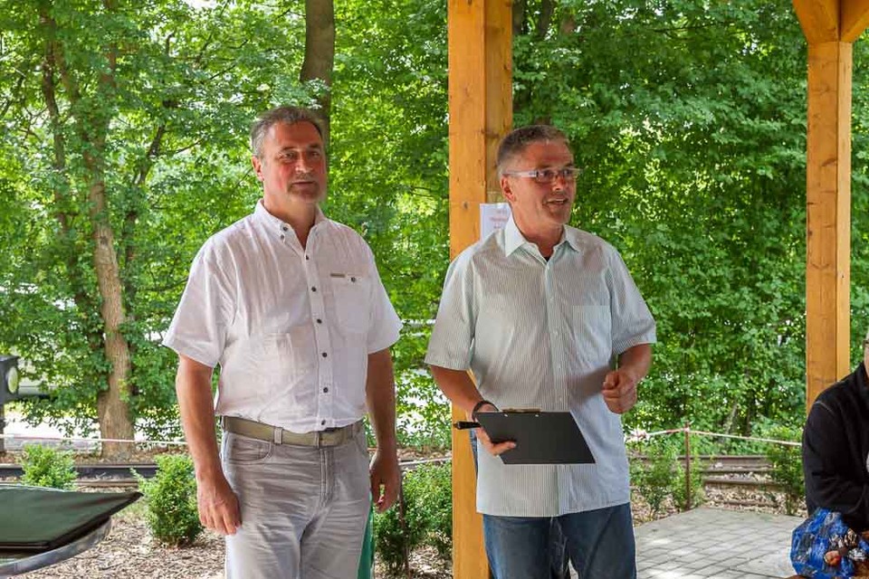 Sommerfest 2017 / Foto: Steven Kunz Sommerfest 2017 / Foto: Steven Kunz Sommerfest 2017 / Foto: Steven Kunz Es entwickelten sich sehr angeregte Unterhaltungen / Foto: Steven Kunz Sommerfest 2017 / Foto: Steven Kunz Auch die Ortsgruppenvorsitzenden (v.r.n.l.) aus Kassel, Michael Kleinemeier, und Frankfurt, Lars Wachsmuth, waren zu Besuch / Foto: Steven Kunz Sommerfest 2017 / Foto: Steven Kunz Sommerfest 2017 / Foto: Steven Kunz Unser Vorsitzender Thomas Mühlhausen mit einem unserer Pensionärsbetreuer Hermann Schade im Gespräch / Foto: Steven Kunz Passend zur Kaffeezeit besuchte uns unser Überraschungsgast: Der Bundesvorsitzende der GDL, Claus Weselsky / Foto: Steven Kunz Auch Bebras Bürgermeister Uwe Hassel stattete uns einen Besuch ab / Foto: Steven Kunz Sommerfest 2017 / Foto: Steven Kunz Die Ehrungen übernahm diesmal unser Gast Claus Weselsky / Foto: Steven Kunz Sommerfest 2017 / Foto: Steven Kunz Sommerfest 2017 / Foto: Steven Kunz Sommerfest 2017 / Foto: Steven Kunz Klaus Dieterle wurde für 50-jährige Mitgliedschaft in der GDL geehrt / Foto: Steven Kunz Aber eigentlich kam Claus Weselsky wegen einer bestimmten Person: Günther Kinscher ist dieses Jahr im 40. Jahr als Vorstandsmitglied in der GDL aktiv. Beginnend mit dem Ortsjugendleiter bekleidete er sämtliche Ämter über den Bezirksvorsitzenden bis zum stellv. Bundesvorsitzenden / Foto: Steven Kunz Sommerfest 2017 / Foto: Steven Kunz Pensionärsbetreuer Peter Havasi überreichte Günther Kinscher ein Präsent der Ortsgruppe / Foto: Steven Kunz v.l.n.r.: Uwe Hassel, Claus Weselsky, Günther und Marianne Kinscher, Thomas Mühlhausen / Foto: Steven Kunz Gruppenbild der geehrten Kollegen mit den Ehrengästen / Foto: Steven Kunz Claus Weselsky im Gespräch mit langjährigen Mitgliedern / Foto: Steven Kunz v.l.n.r.: Günther Kinscher, Claus Weselsky, Thomas Mühlhausen / Foto: Steven Kunz Andreas Becker, Vorstandsmitglied der Eisenbahnfreunde Bebra e.V., überreichte Claus Weselsky ein kleines Geschenk zur Erinnerung an den Besuch am Wasserturm / Foto: Steven Kunz Anschließend gab es noch eine Fahrt im Biber-Blitz um den Wasserturm / Foto: Steven Kunz