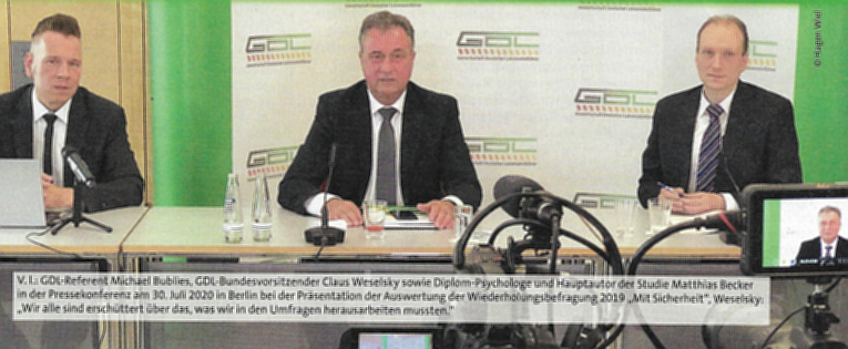 Schließlich müssen die Arbeitgeber dringend die Sicherheit des Zugpersonals verbessern - allein schon deshalb, weil bereits heute die potenzielle Fahrdienstuntauglichkeit von morgen produziert wird. Ziel der GDL ist es, aus den Ergebnissen der Studie gemeinsam mit den Eisenbahnverkehrsunternehmen nachhaltig für mehr Sicherheit für das Zugpersonal zu sorgen. Am 6. August 2020 wird dazu eine Live-Konferenz mit den Arbeitgebervertretern der Branche stattfinden. Weselsky: „Die Frage, ob sich die beteiligten Arbeitgeber der Sache widmen, wird natürlich unter an derem auch davon abhängen, wie nachhaltig wir unsere Forderungen im Rahmen von Tarifverhandlungen umsetzen. Wir sind dafür bekannt, dass wir nicht nur nachhaltig, sondern schlussendlich auch sehr stringent konsequent unsere Tarifpolitik umsetzen. Insoweit möchte ich unseren Kolleginnen und Kollegen draußen schon einmal Hoffnung machen, dass wir uns des Themas annehmen und dann auch die entsprechenden Mittel zur An- wendung bringen, wenn da überall nur Abwinken oder kein Problembewusstsein vorhanden ist."