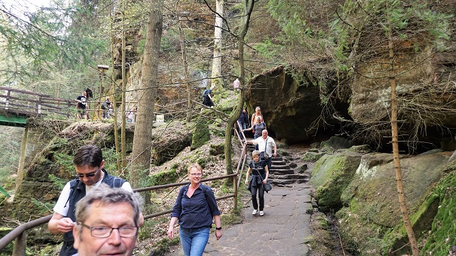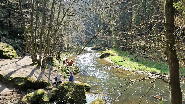 Am 21.04.2018 hatten wir unseren Wandertag. Wir fuhren mit dem Zug nach Königsstein und von dort weiter mit dem Bus nach Mezni Louka, wo wir uns stärkten. Anschließend wanderten wir über die wilde Klamm und die Edmundsklamm nach Hrensko...
