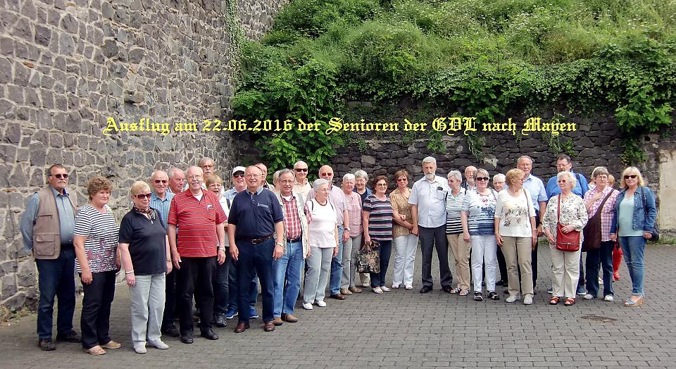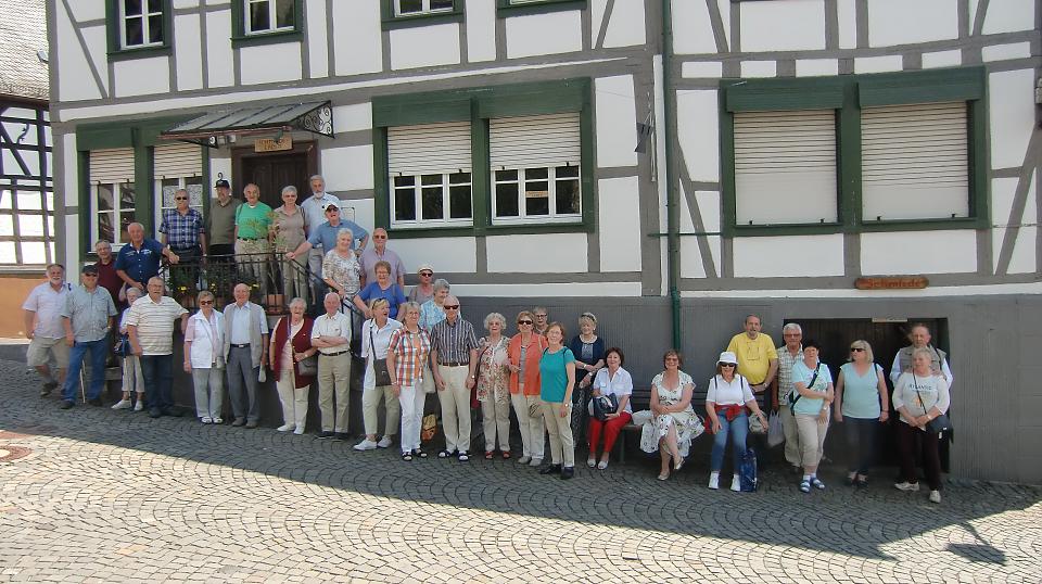 Am 18. Juni 2019 starteten die Senioren der Ortsgruppe Frankfurt zum alljährigen Ausflug ins Rheintal. Bei schönen Wetter begann die Tour in Frankfurt-Nied um 8:30 Uhr. Sie führte uns über die Autobahn Richtung Wiesbaden und ab Wi- Bieberich rechtsrheinisch über Eltville, Rüdesheim, Kaub auf die Loreley. Dort angekommen, konnte man den neu angelegten Kultur-und Landschaftspark besichtigen und die Aussicht auf den Rhein genießen. Der Park wird Bestandteil der Bundesgartenschau 2029. Nach einem Imbiss im Cafe ging es weiter nach Königsbach bei Koblenz. Dort kehrten wir zum Mittagessen in das Restaurant der Koblenzer Brauerei ein. Auf der Terrasse hatten wir einen schönen Blick auf den Rhein. Das Bier schmeckte und der Chor sang einige Lieder. Das vorbestellte Essen der Speisekarte wurde auch prompt serviert. Die Kellnerin mit ihrem rheinischen Frohsinn hatte alles im Griff. Wir hatten unseren Spaß. Nach zwei Stunden ging es weiter nach Boppard. In Boppard teilte sich die Gruppe. 30 Leute fuhren mit dem Sessellift zum Gedeonseck und Vierseenblick. 18 Leute verbrachten die Zeit in der Stadt zum Bummeln (Rheinpromenade, Alte Stadtmauer, Fußgängerzone) Um 17:00 Uhr ging es wieder zurück nach Frankfurt-Nied, linksrheinisch über Oberwesel, Bacharach, Bingen.