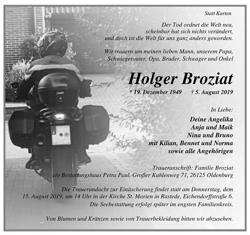 Die Trauerandacht findet statt am 15. August 2019, um 14 Uhr in der Kirche St. Marien in Rastede, Eichendorffstraße 6.