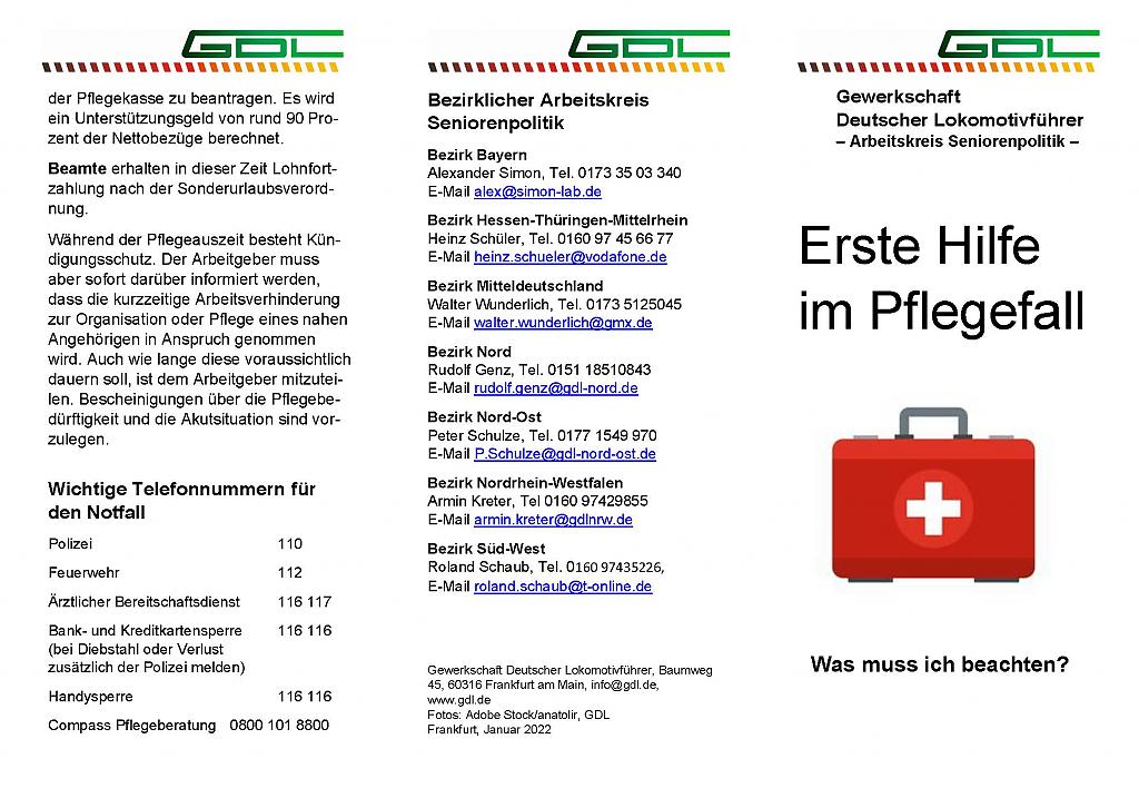 Der Arbeitskreis Seniorenpolitik hat aktuell einen Flyer zum Thema "Erste Hilfe im Pflegefall" herausgegeben. Zusätzliche Informationen für Beamte gibt es