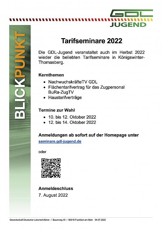 Die GDL-Jugend veranstaltet auch im Herbst 2022 wieder die beliebten Tarifseminare in Königswinter- Thomasberg.