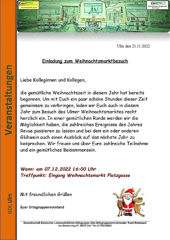 Gewerkschaft Deutscher Lokomotivführer-Ortsgruppe Ulm-Ortsgruppenvorsitzender René Rebenack, Am Bleicher Hag 57, 89075 Ulm**Tel.:0175/9358683