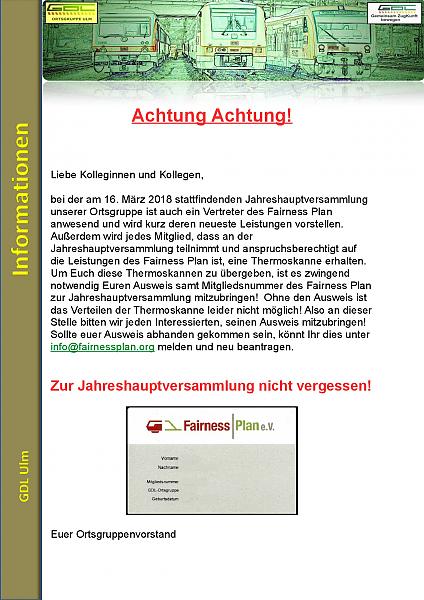 Um Euch diese Thermoskannen zu übergeben, ist es zwingend notwendig Euren Ausweis samt Mitgliedsnummer des Fairness Plan zur Jahreshauptversammlung mitzubringen! Ohne den Ausweis ist das Verteilen der Thermoskanne leider nicht möglich! Also an dieser Stelle bitten wir jeden Interessierten, seinen Ausweis mitzubringen! Sollte euer Ausweis abhanden gekommen sein, könnt Ihr dies unter [email protected] melden und neu beantragen.