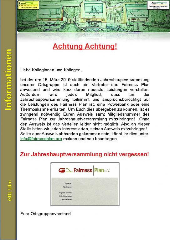 Außerdem wird jedes Mitglied, dass an der Jahreshauptversammlung teilnimmt und anspruchsberechtigt auf die Leistungen des Fairness Plan ist, eine Powerbank oder eine Thermoskanne erhalten. Um Euch dies übergeben zu können, ist es zwingend notwendig Euren Ausweis samt Mitgliedsnummer des Fairness Plan zur Jahreshauptversammlung mitzubringen! Ohne den Ausweis ist das Verteilen leider nicht möglich! Also an dieser Stelle bitten wir jeden Interessierten, seinen Ausweis mitzubringen!